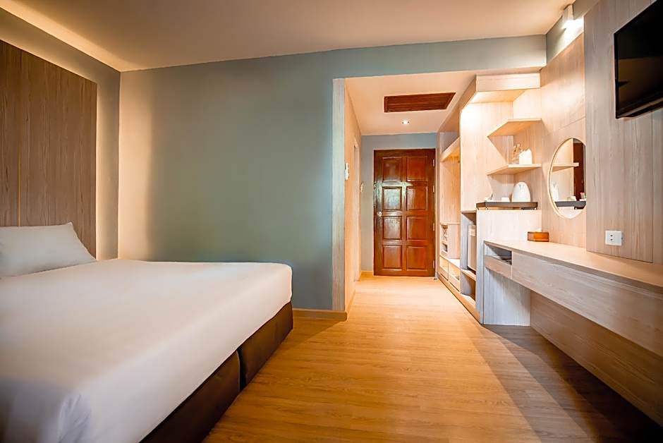 Deluxe Double Room is 431 square feet and includes a king-size bed 150-183 width plus extra beds on demand and desk.